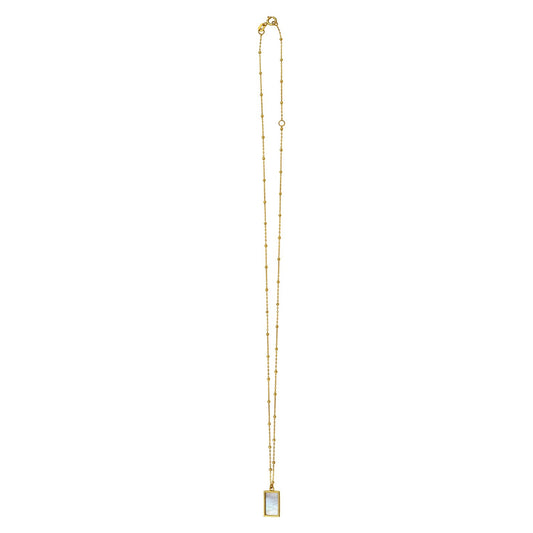 MOP Geometric Gem Rectangle Necklace in 14K Yellow Gold