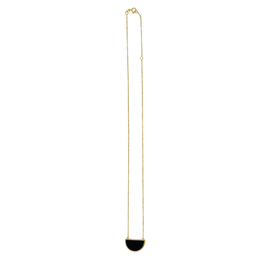 Onyx Geometric Half Moon Necklace in 14K Yellow Gold