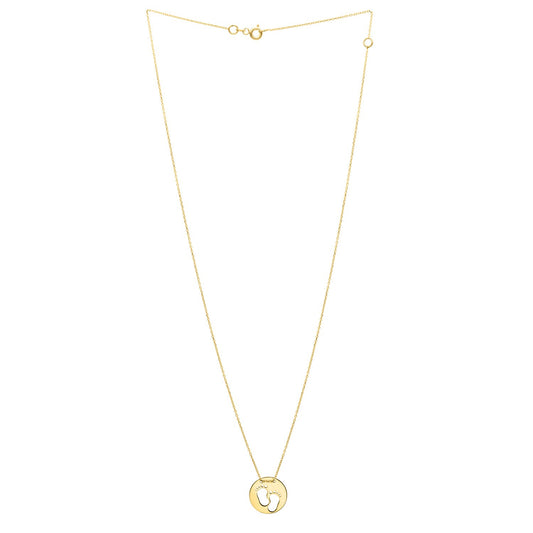 14k Yellow Gold Necklace with Dog Paw Print Symbol in Mother of Pearl
